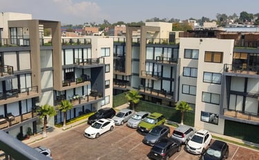 Cada departamento cuenta con 2 cajones de estacionamiento propio, terrazas interiores y espacios amplios; sistema parcial y automático de iluminación.